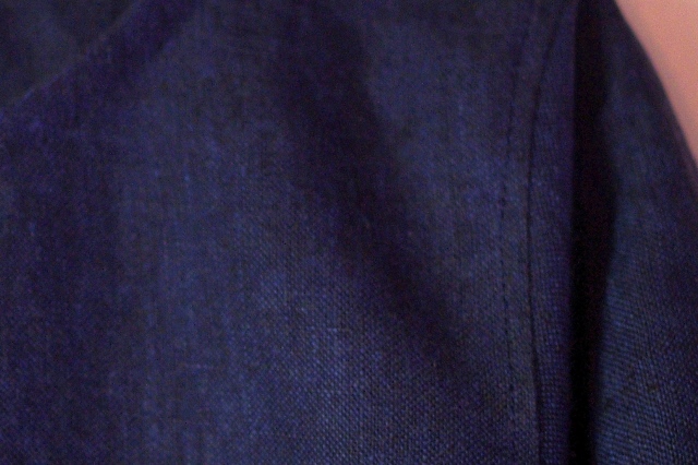 深いネイビーと綺麗なブルーのリネン糸で織られていて、
